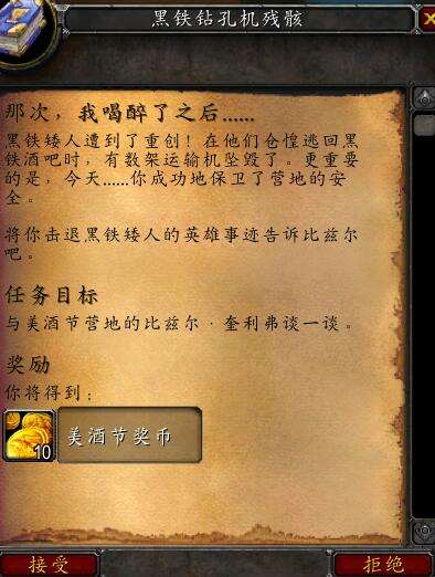1、【那次我喝醉了之后】任务需要先在美酒节活动场地成功抵挡一次黑铁矮人的进攻后才能接到,黑铁矮人进攻每半小时刷新一次
