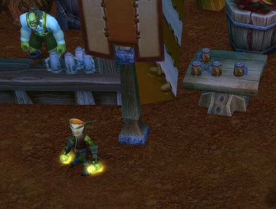 4、而当你身处上图这种双持发光酒杯的NPC附近时,扔完酒杯他会自动给你补充一个,所以抵挡进攻只要对着包里的【免费美酒节取样器】狂点即可,记得面朝黑铁矮人们以确保酒杯是砸向他们的