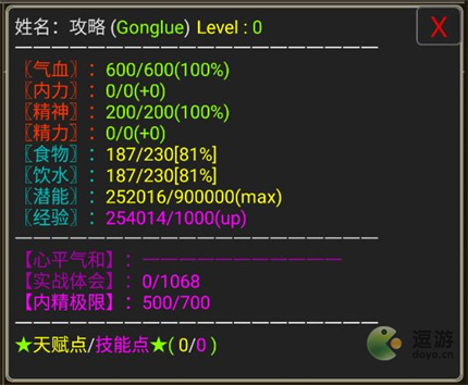 这样就不会因为超过上限而浪费潜能。或者把悟性洗点洗高,把潜能上限洗成200W以上,这样就可以挂机不用管了。同时因为天佑拳300W经验以后就失效了,所以前期不要吃任何增加经验的道具(包括但不限于月饼长寿面蛋糕和武林密藏)。