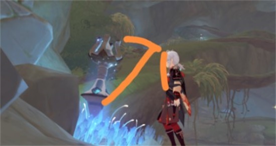 3、来到地方后,往右边看,就会看到一个斜坡,往上走,就会看见一个死域核,然后把它击破,就可以解开了。