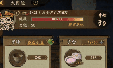 4、商途结束:当健康值归0时,再次点击来年则视为商途结束,进入结算。