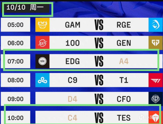 上午7点EDG对A4,10点 C4对TES。这一天EDG和TES的对手都是从入围赛突围的战队,难度不算太大,但是也不要轻敌。