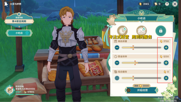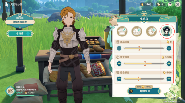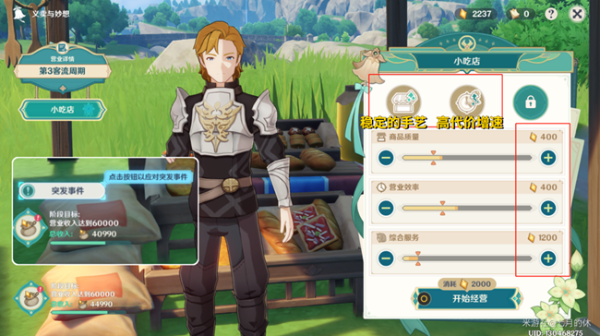 到这一步,就可以邀请好友了,策略的选择,包括邀请好友和营业详情里的店铺助手,就是分别在给质量、效率、服务加能量条,再+经营资金,3个能量条都能达到黄色标即可!