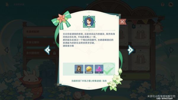 位置线索:我把礼物放在了蒙德城一家店的后门,这里的猫咪还算可爱,气鼓鼓的调酒师制作的鸡尾酒也算美味-尽管还是比不上我至冬的火水。