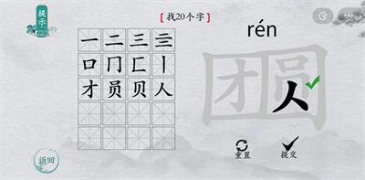 3、第三行,从左往右的答案分别是:【才、员、贝、人】;