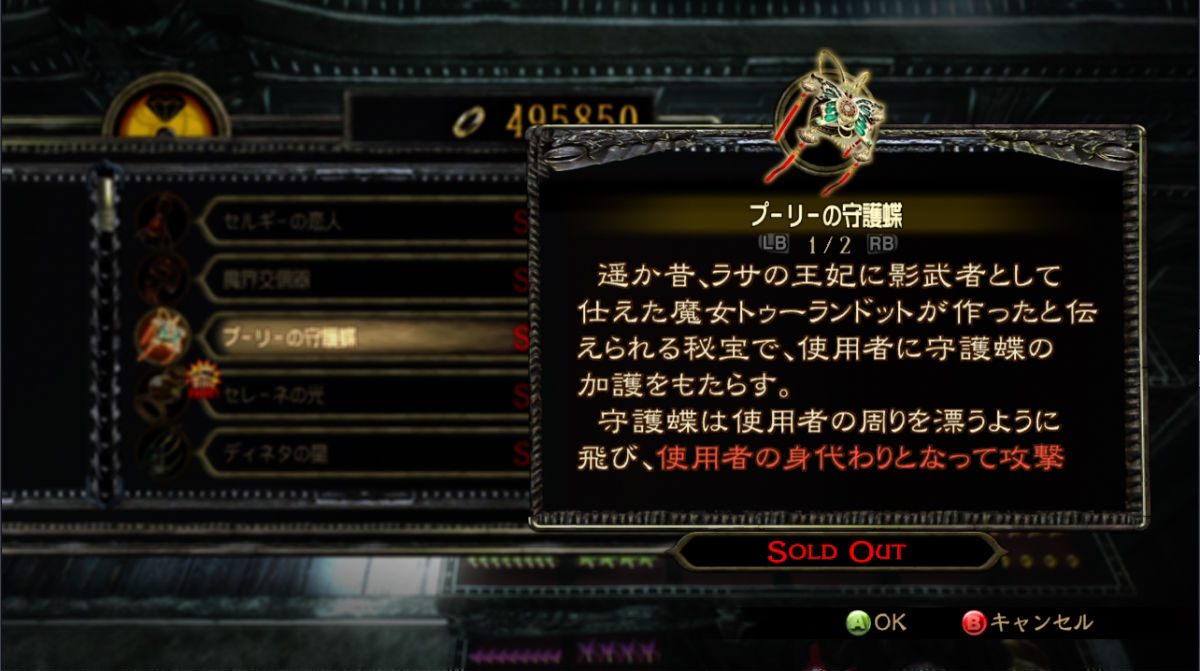 在《猎天使魔女1》中,玩家可以在罗丹的商店中购买各种魔导器来增强战斗力。布礼的守护蝶即为其中一种魔导器。