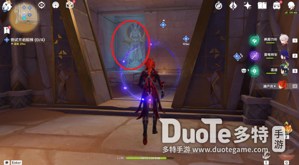 4、开启棺椁从左右两边门进入后找到四个元能火种激活元能火炬