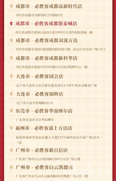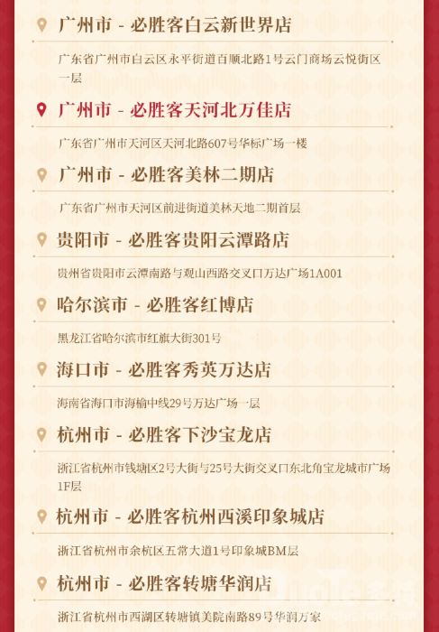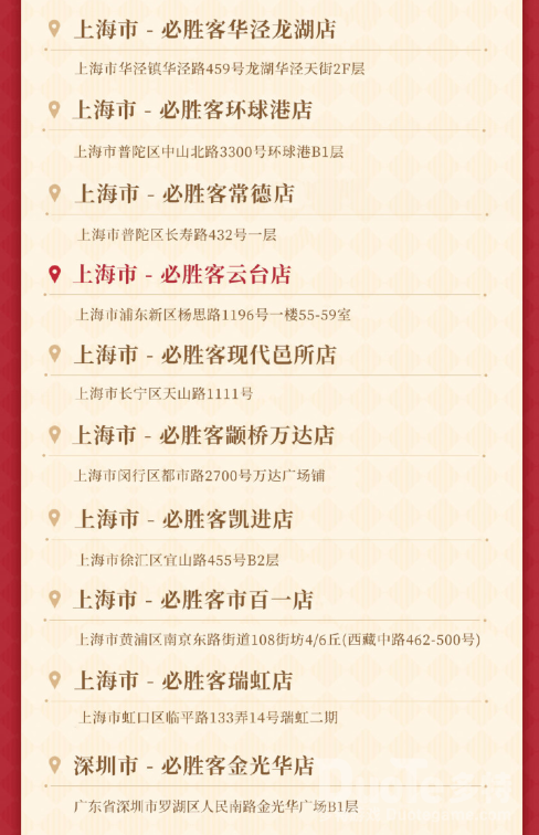 ● 本活动不适用于机场、火车站、高速公路、旅游度假、游乐场、展览馆、ToGo、Express、Les Elites、奥特莱斯、精选餐厅以及必胜客部分特定餐厅。