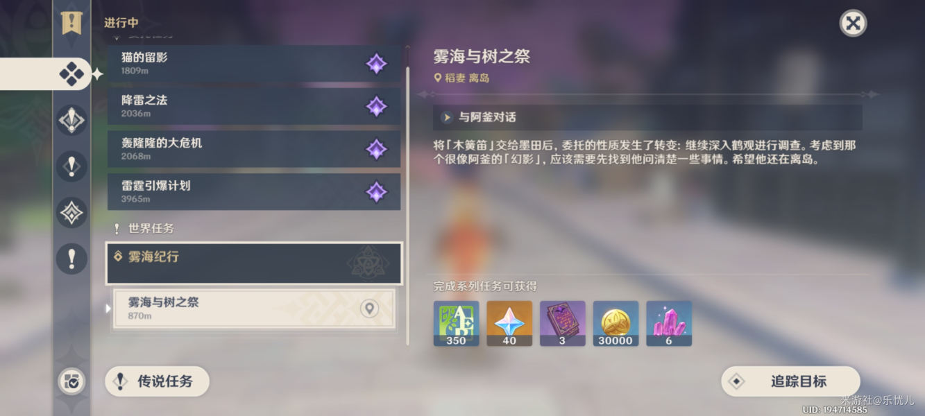 做完这个任务后有个世界任务(不知道雾海纪行是不是他的前置任务)