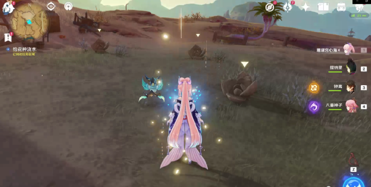 2、需要帮助阿凡给花浇水,使用水元素角色来浇水。