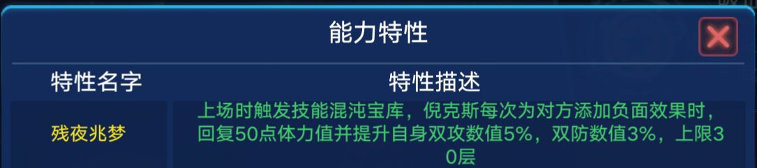 13.评价:倪克斯总的来说,还算一个比较可以的辅助,至少不像其它宝藏宠只是速刷或者同调材料了。倪克斯比较偏向巅峰塔、轮回塔一点。缺点主要是削属效果不强,如果对面提属太快,拦不住。还有就是不提升物防,虽然专属特性有双防数值加成,如果对面会削物防,还是比较吃力的。新手或者缺资源的小伙伴不着急练,看看后面版本副本、版本boss挑战的表现如何再考虑练不练。