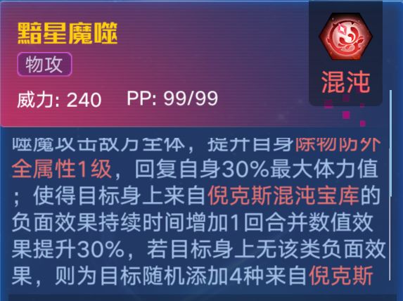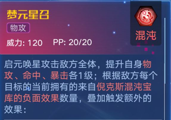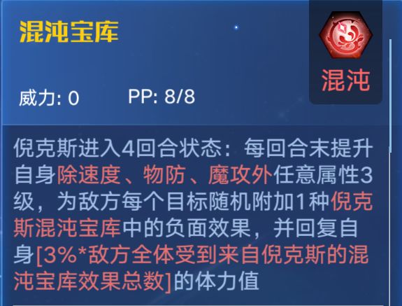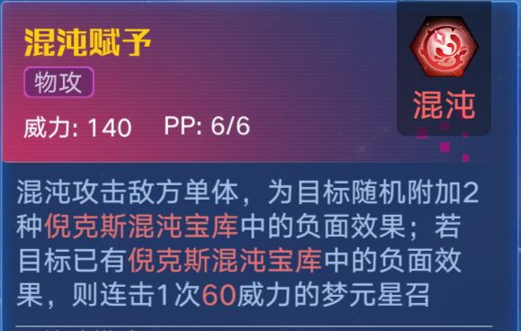 ③三技能其实可以理解为加化版的一技能,添加两个混沌宝库效果,并且连击一技能。就是pp比较少,只有6点。