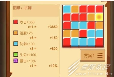 3、方案3:生命红*1+速度橙*5+攻击蓝*11+防御绿*8;