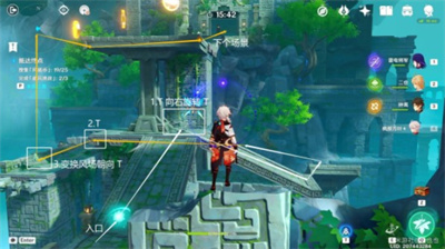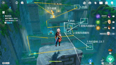 1、根据图中标注的路线前进,操作两次让风场向上;