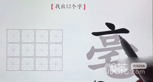 2、不知道有哪些字的可以参考这12个字,按照顺序一次在毫字上书写就可以过关了。