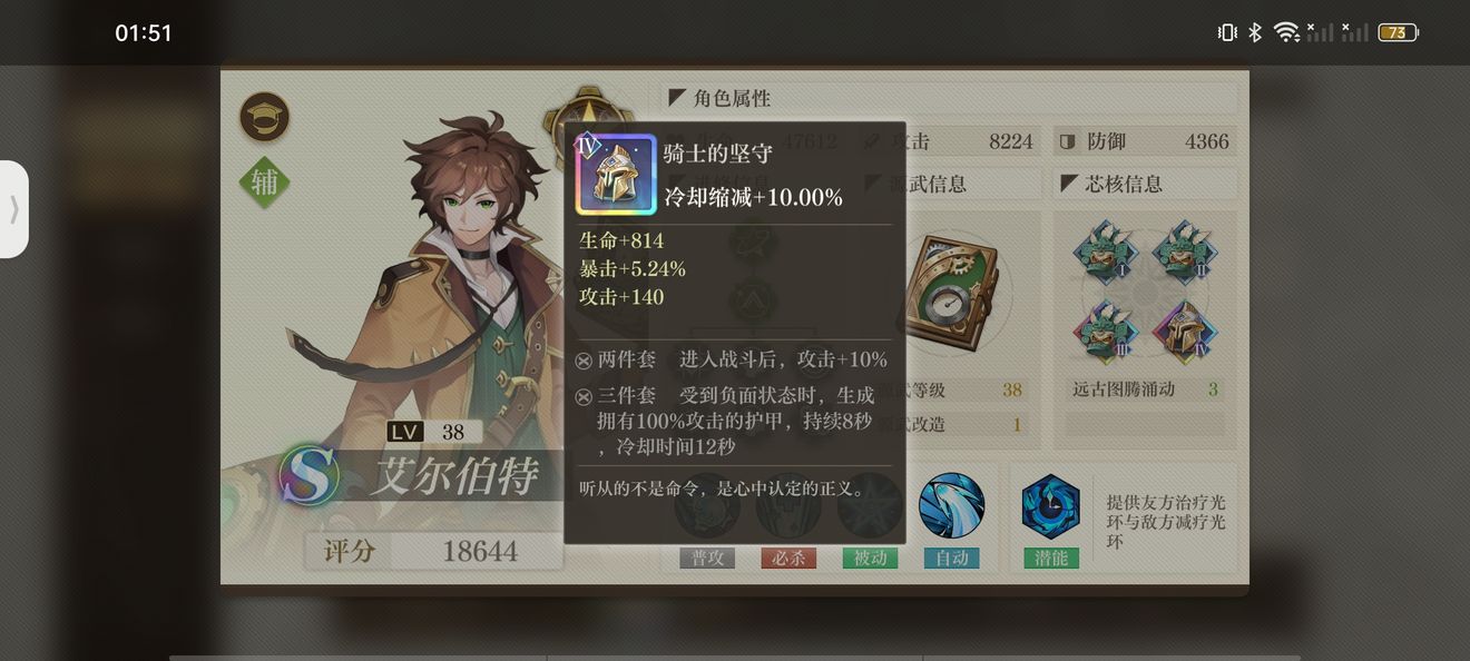2、艾尔伯特自动技能间隔9秒,在70%冷却缩减下可以以2.7秒一次的频率释放技能保证全队血量和全屏输出,再搭配输出携带的需要释放自动技能触发效果的芯核,冷却缩减的提升会进一步扩大。