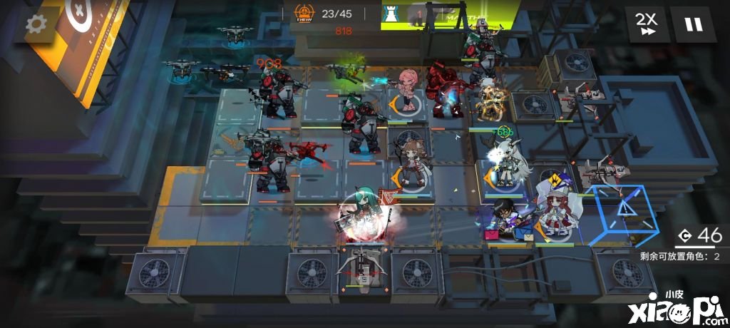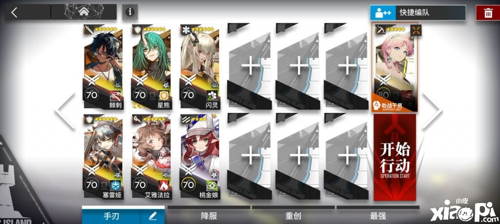 开局部署顺序为桃金娘←棘刺↑塞雷娅←闪灵←蓝毒←小羊←,等打死了下路的大锤再下星熊,最后一波会有3个连续的大锤,推荐用42耀光帮助切一下,多带个重装补位星熊也可以