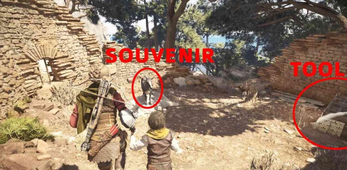 与山羊互动即可解锁回忆。打开旁边的箱子还能拿到1个工具。