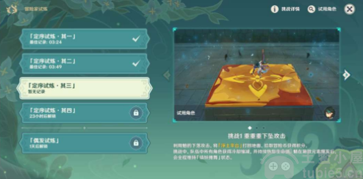 原神的冒险家试今日已经开放到第三天了,也就是定序试炼其三,玩家们还是只能使用系统分配的角色进行挑战,对于刚入坑的玩家来说还是有一定的难度的,那么今天小编就给大家介绍一下定序试炼第三天萌新通关指南,还不会的玩家们速速来抄作业!