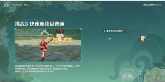 挑战期间,所有角色持续恢复生命值宵宫一直不断的攻击敌人,现场普通攻击就够了,还会继续回血。