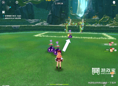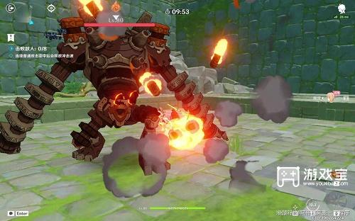 使用宵宫进行普通攻击,召唤冲击波消灭敌人。无脑普攻即可,单人下击败8个敌人完成挑战。