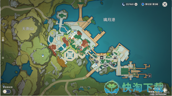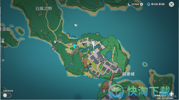 1、首先传送到稻妻城位置,然后朝着八重堂飞过去。