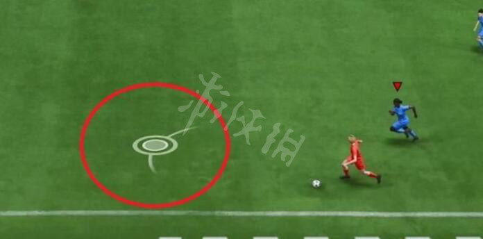 防守时也会在对方的持球球员前方出现标识(如下图),该点即为做出拦截的最佳位置。