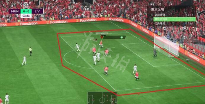 通常情况下,首先需要阻止的是让敌方球员带球进入我方禁区,下图中红线框起的白线区域即为禁区。