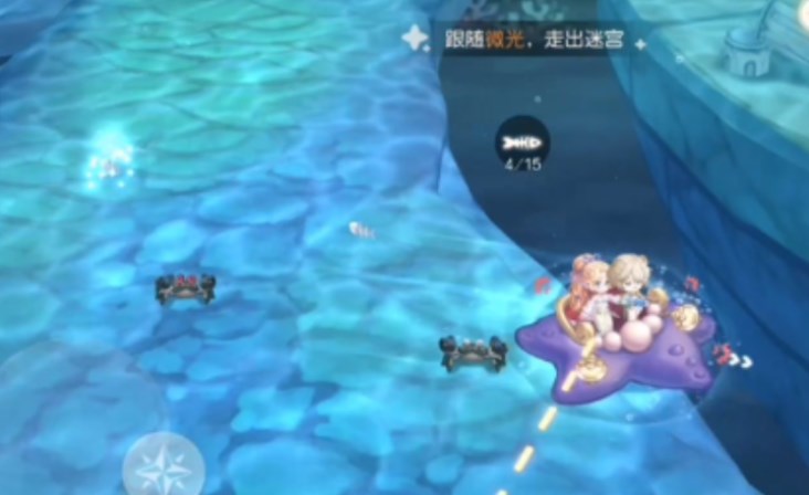 2、开局公主选择三个闪电贴着左边走,尽量避让途中的小螃蟹,王子选择15个鱼骨头,螃蟹追上来就打。