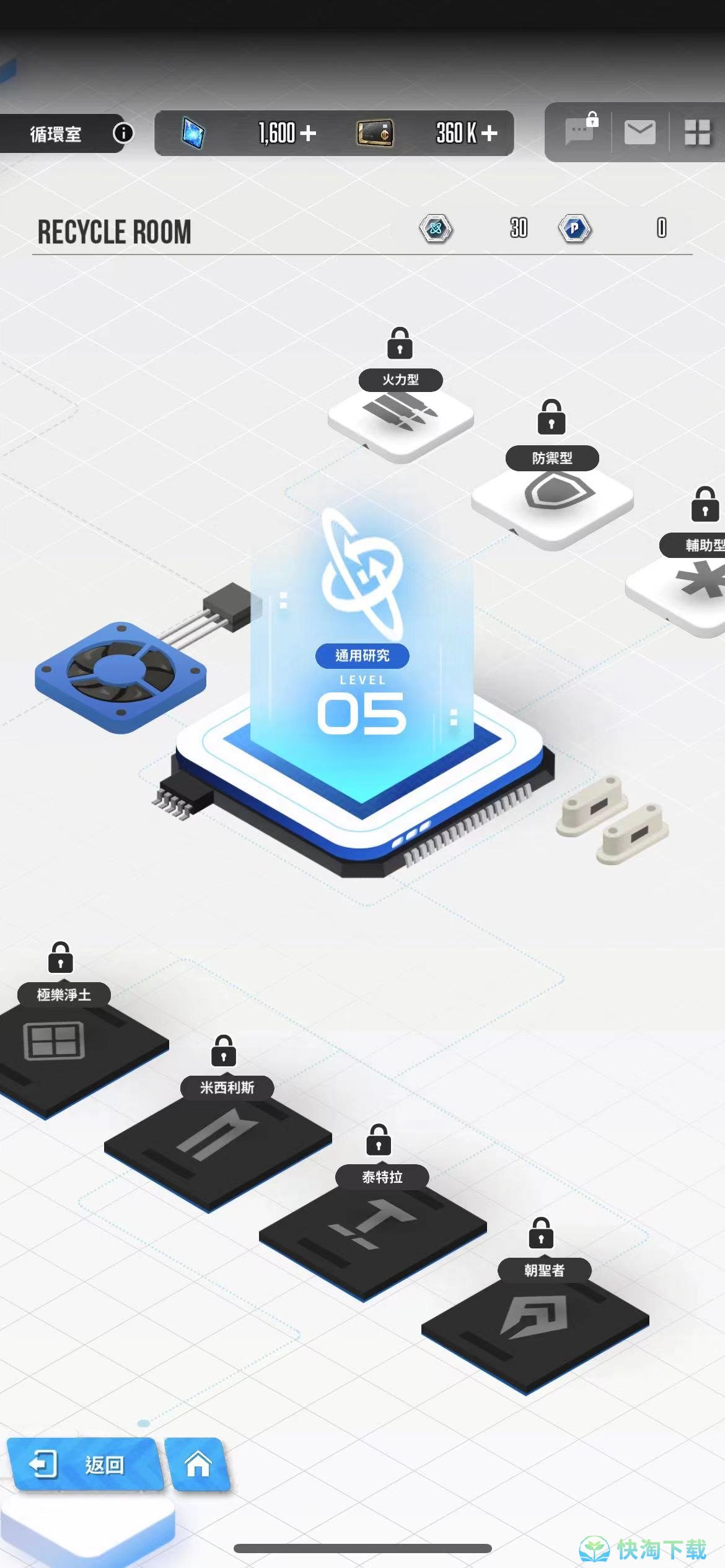 7、而研究点数则是用来解锁职业研究和企业研究,玩家需要升级循环室等级来获得研究点数。