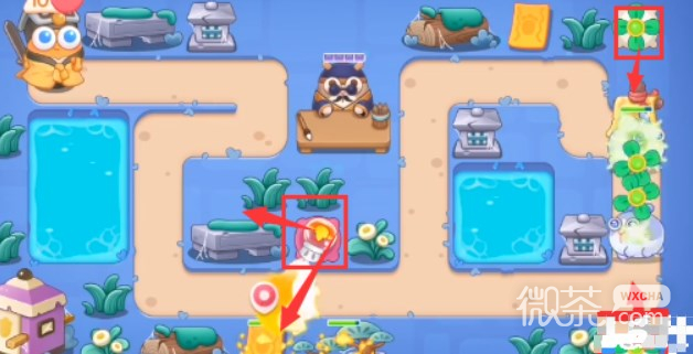 4、把符咒给戏法兔打出来,在中间放雪球塔等打轿子。