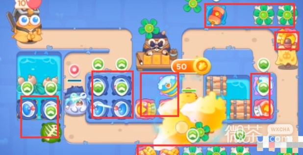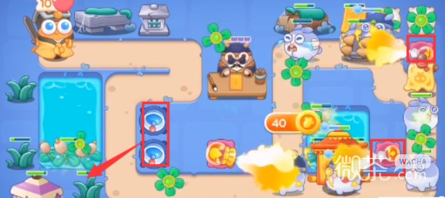 1、可以使用喷火器、雷达、风扇和雪球塔,这关主要用风扇和喷火器。