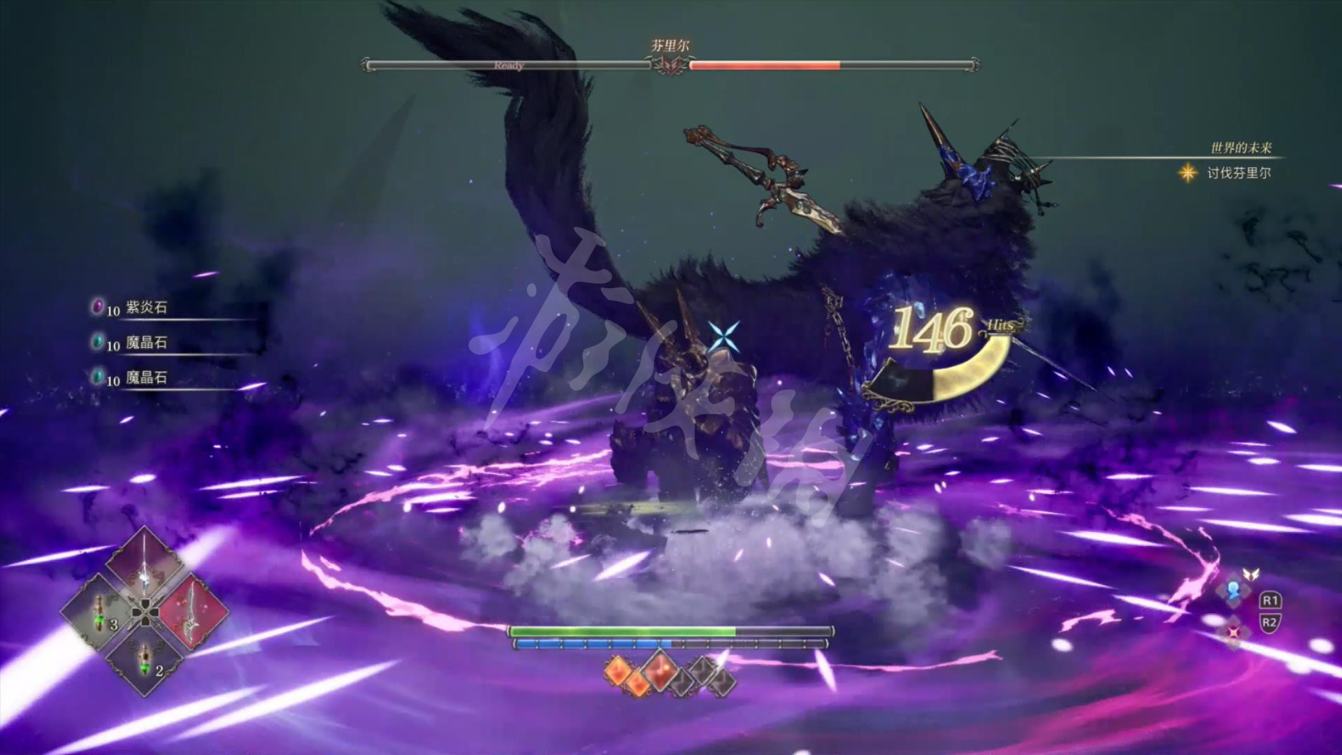 不和阿尔曼对话,翠魂花无所谓有没有收集完,直接进行最终BOSS连续战斗——芬里尔1-希尔德-芬里尔2-芬里尔3。解锁神狼的黄昏奖杯。