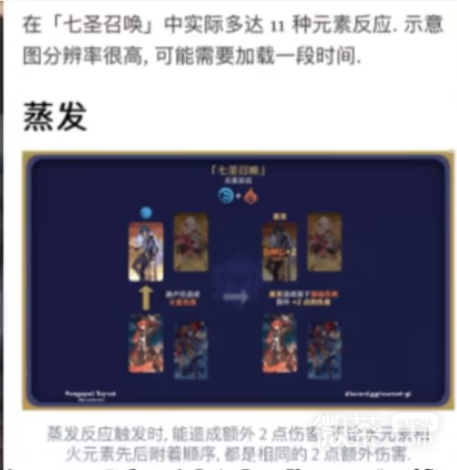 蒸发反应触发时,能造成额外2点伤害,不论水元素和火元素先后附着顺序,都是相同的2点额外伤害。