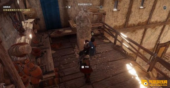 6、到达菲迪亚斯的工坊找到NPC并与他对话。