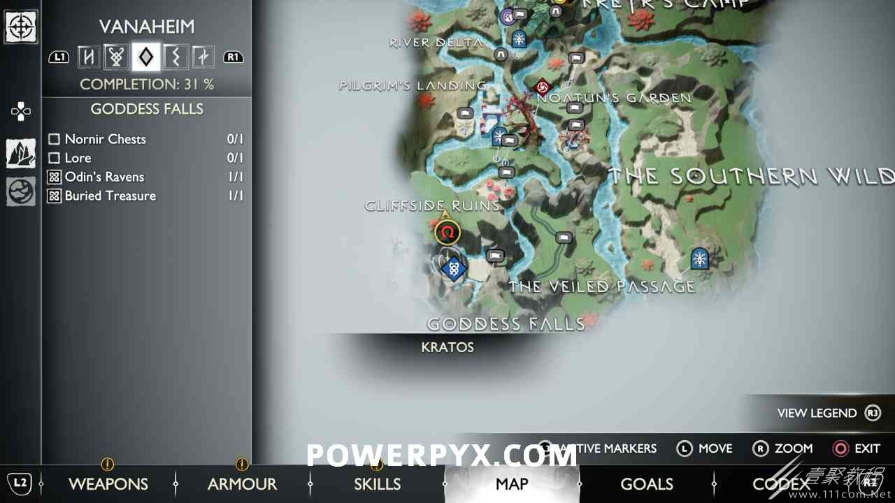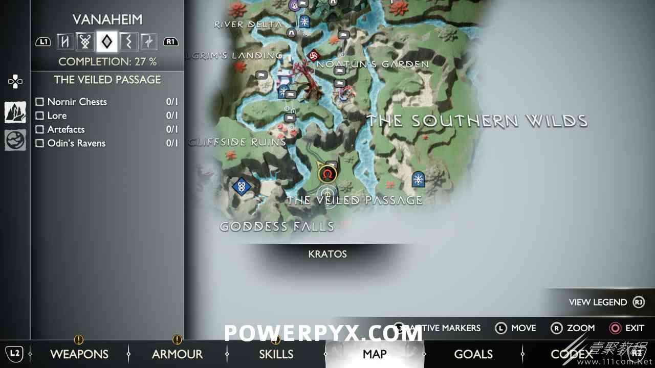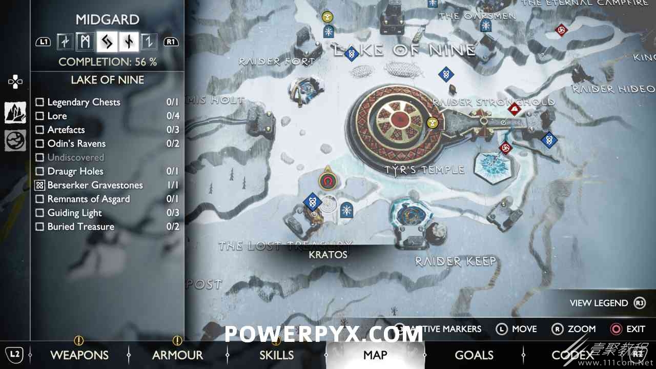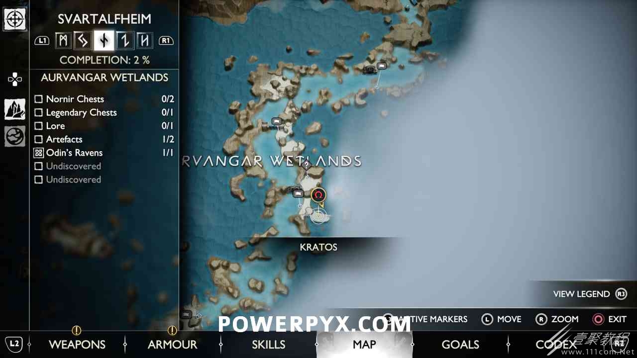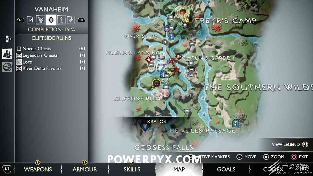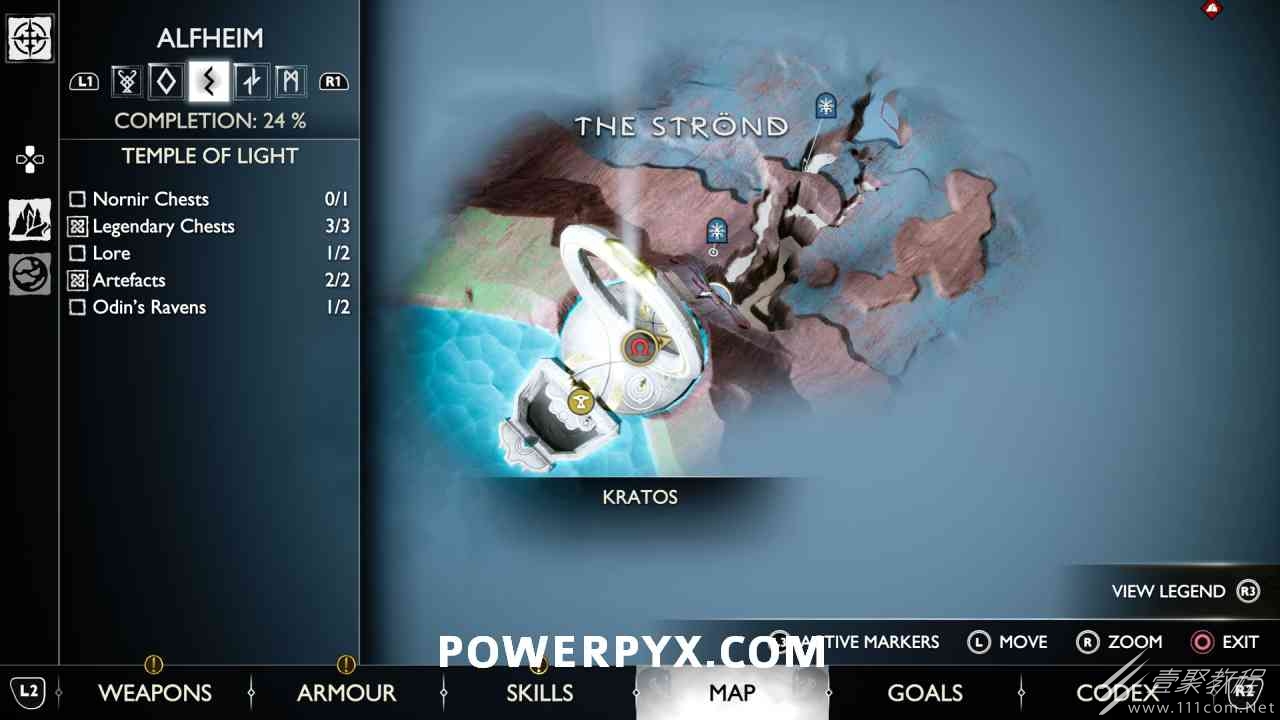后,用神秘的门户划船前往岛屿。爬上壁架,燃烧天花板上的藤蔓(放置 3 个紫色符文箭头并用混沌之刃烧毁它们)。然后你可以跳到一个传奇宝箱,然后绕回神秘门户所在的地方。您必须用斧头击中 3 个 Nornir 字形,直到它们显示正确的符号。第一个在天坛上方,可以在你从传奇宝箱回来的路上看到。第二个在天坛后面,必须烧掉它前面的红藤。#3 位于诺尼尔宝箱的右侧。