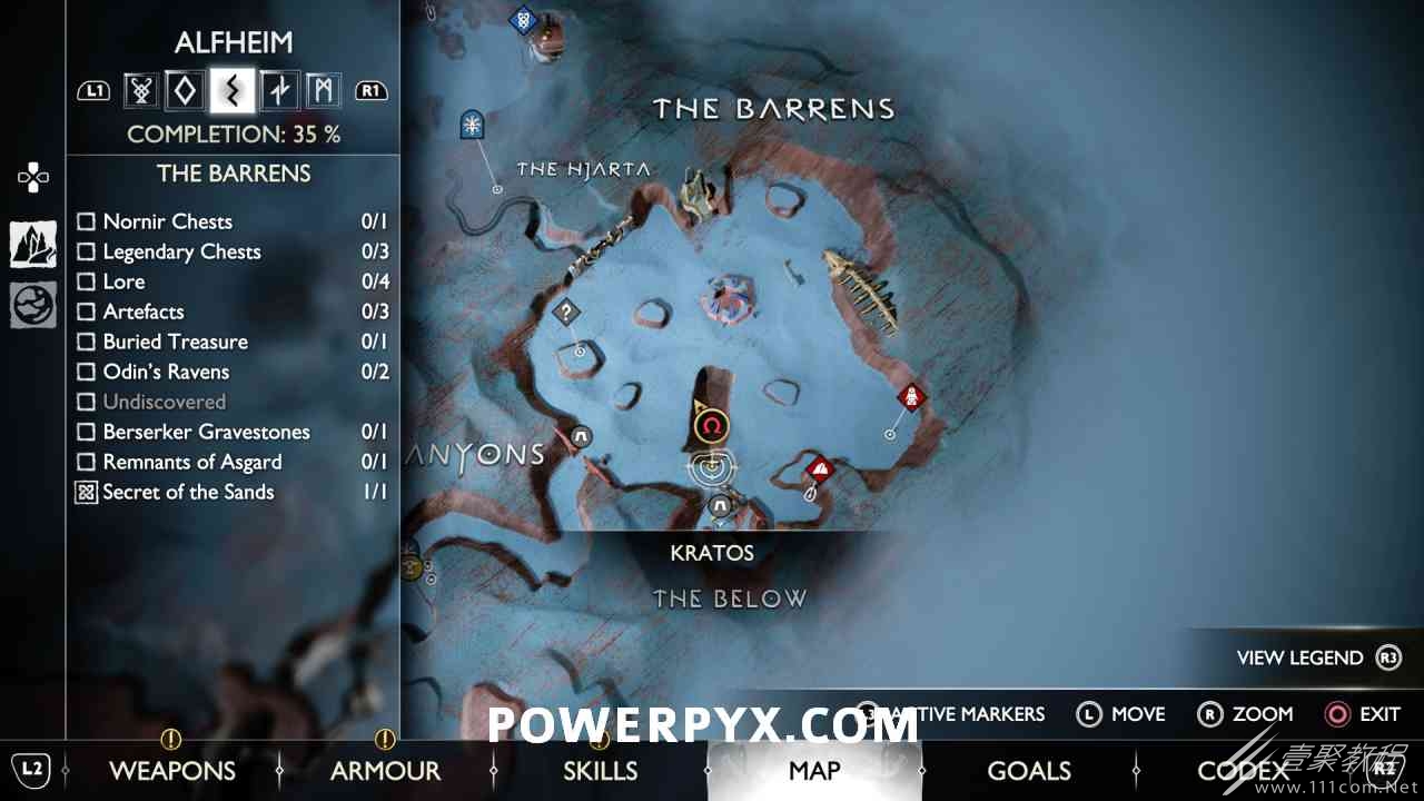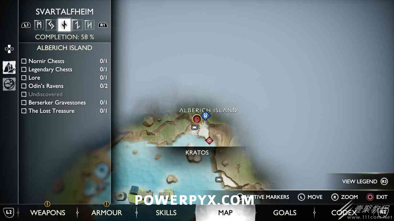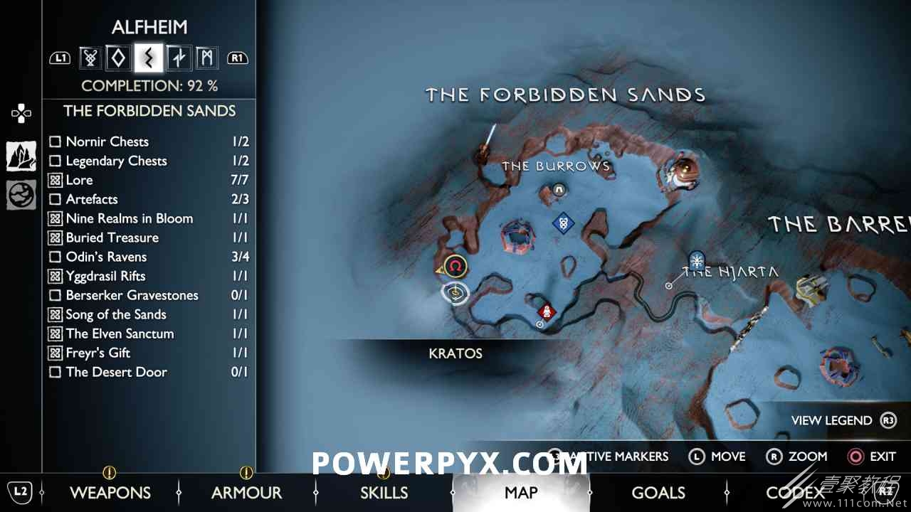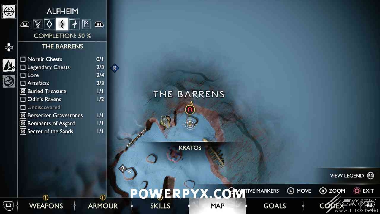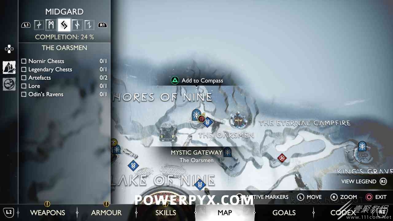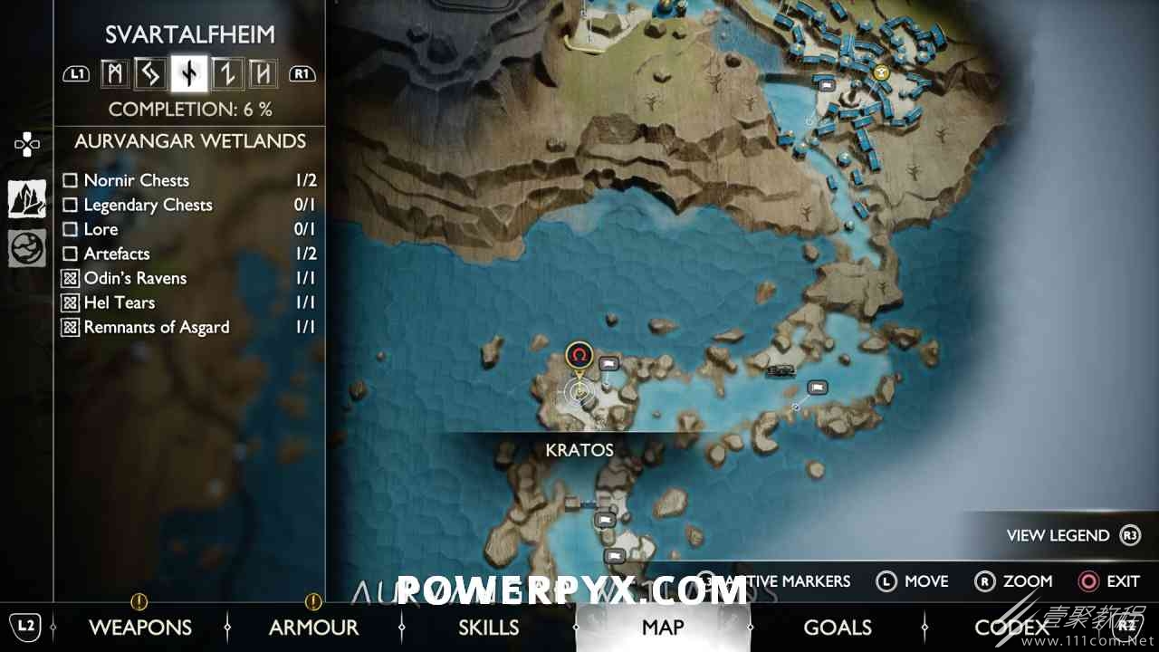 后,用神秘的门户划船前往岛屿。爬上壁架,燃烧天花板上的藤蔓(放置 3 个紫色符文箭头并用混沌之刃烧毁它们)。然后你可以跳到一个传奇宝箱,然后绕回神秘门户所在的地方。您必须用斧头击中 3 个 Nornir 字形,直到它们显示正确的符号。第一个在天坛上方,可以在你从传奇宝箱回来的路上看到。第二个在天坛后面,必须烧掉它前面的红藤。#3 位于诺尼尔宝箱的右侧。