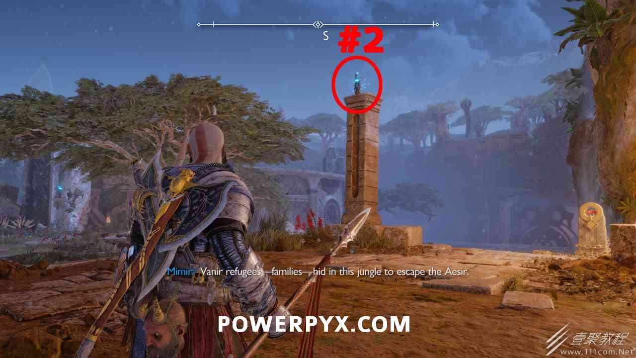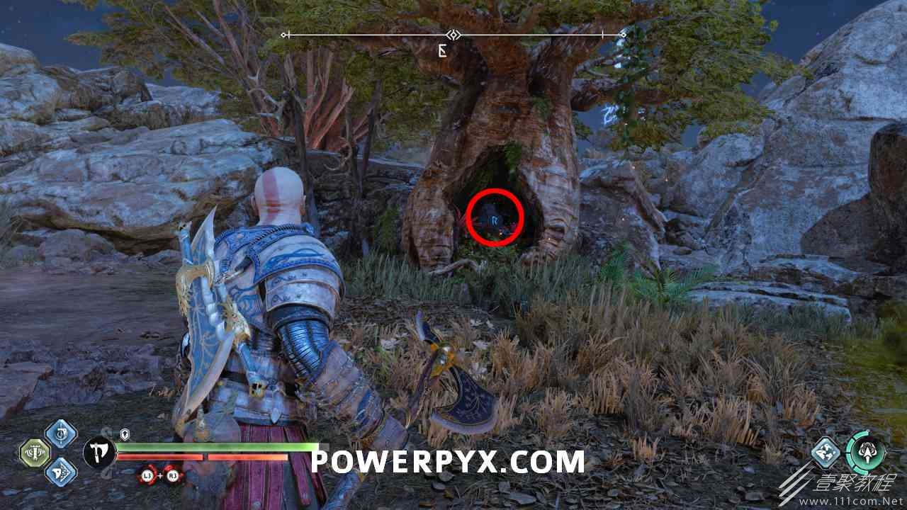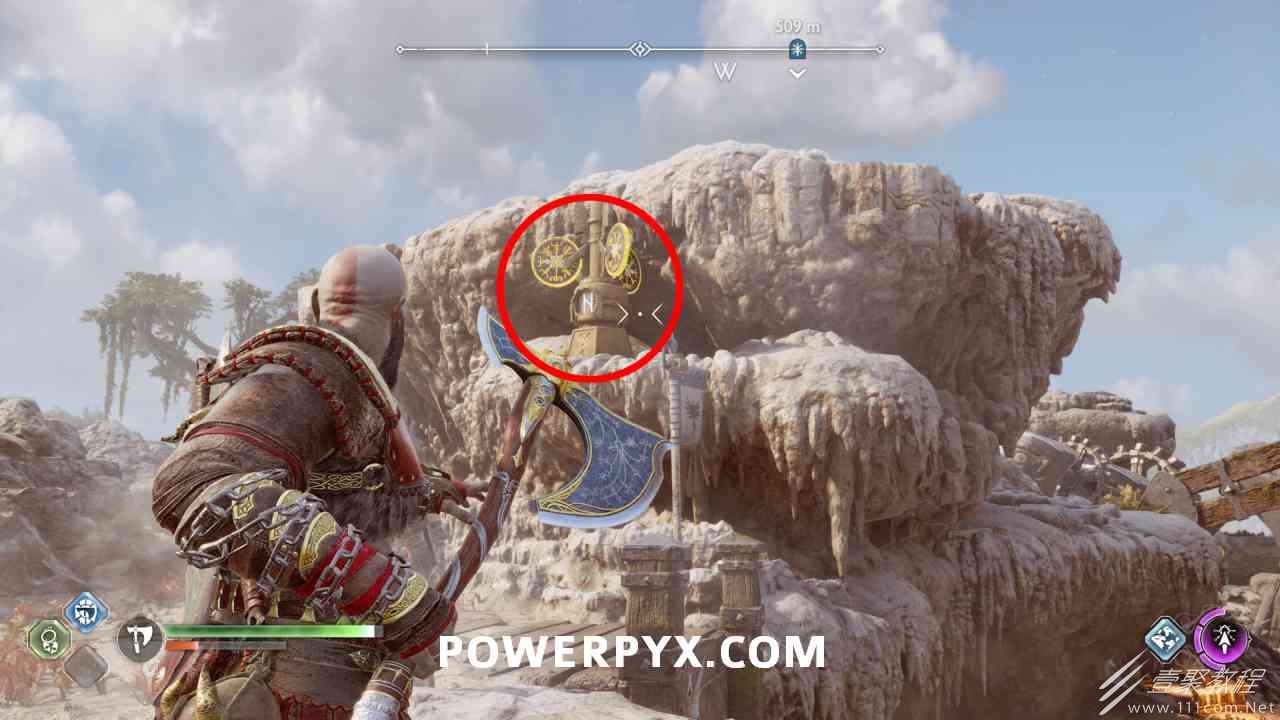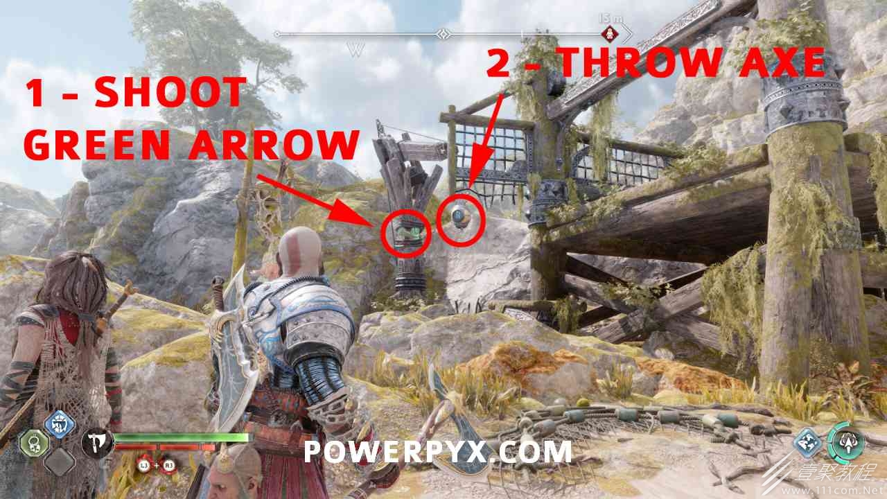向大门射出一支紫色符文箭3次,然后投掷斧头冻结毒药,抬起大门,箱子在后面。你必须摧毁3个诺尼尔图腾。#1 在树上胸部的右侧。#2 在山丘上的胸部左侧。#3在树上的箱子后面,必须向毒图腾扔斧头才能去那里。