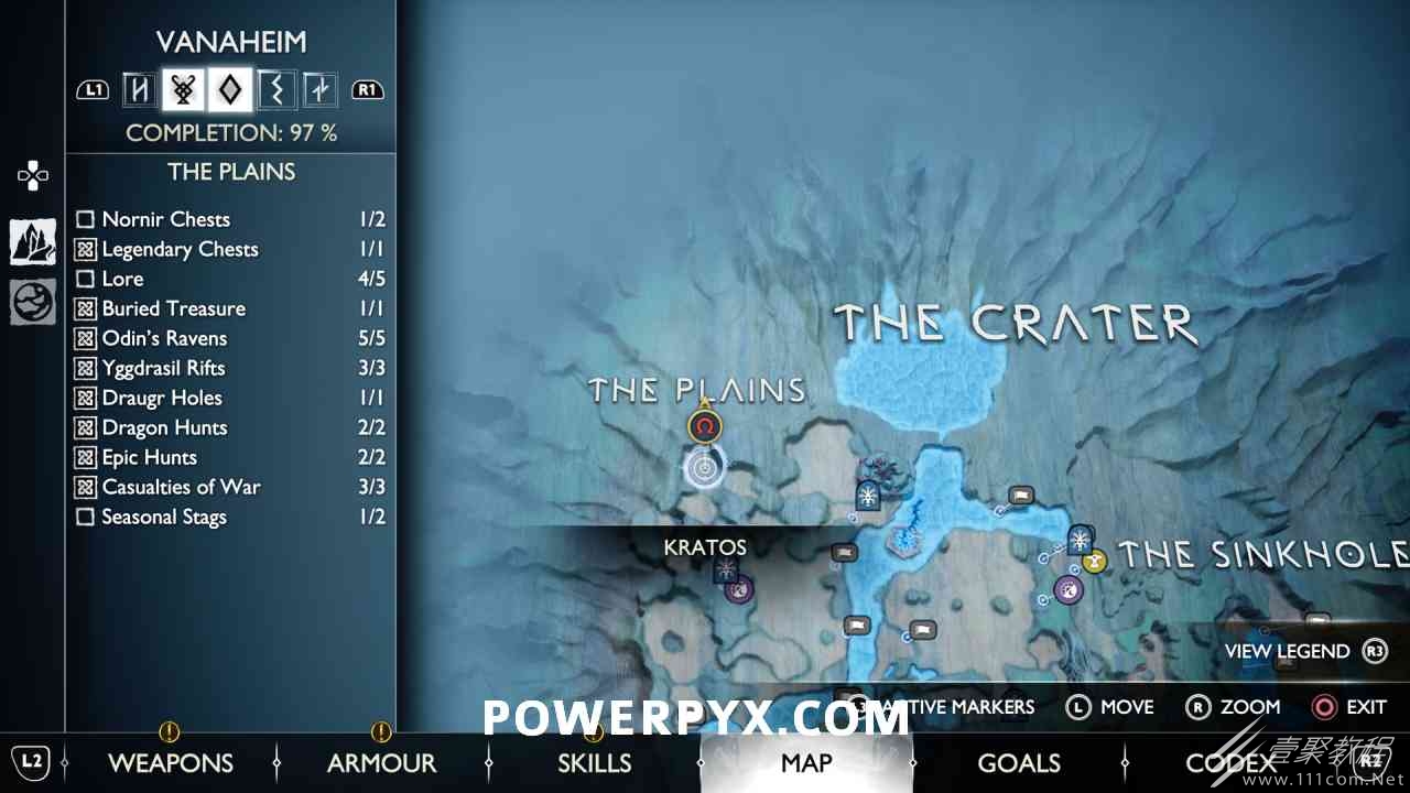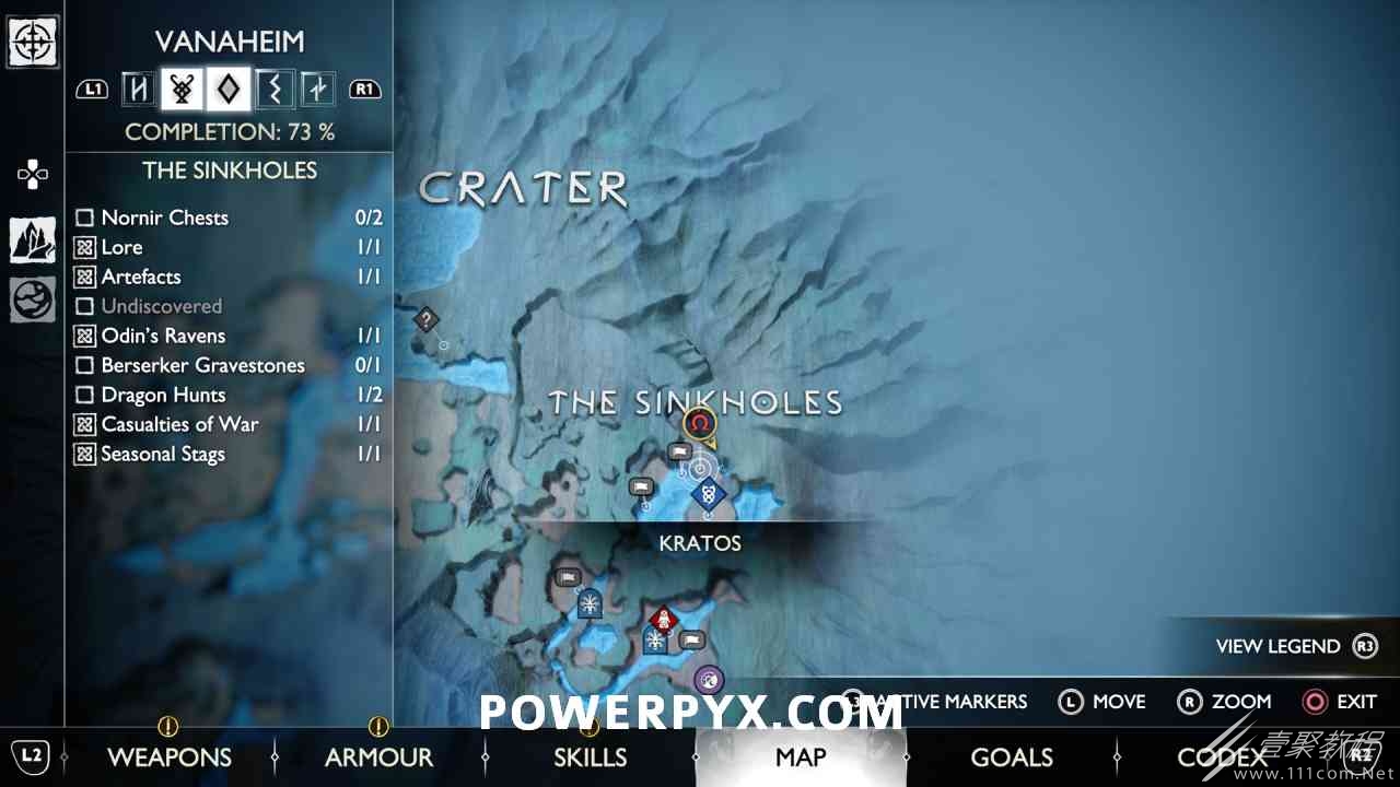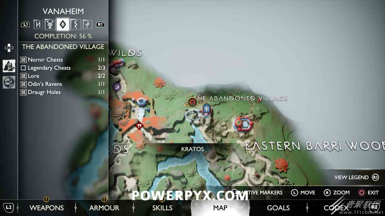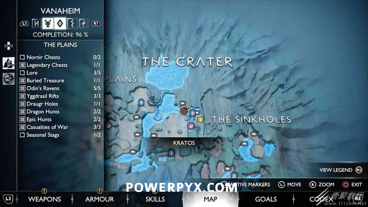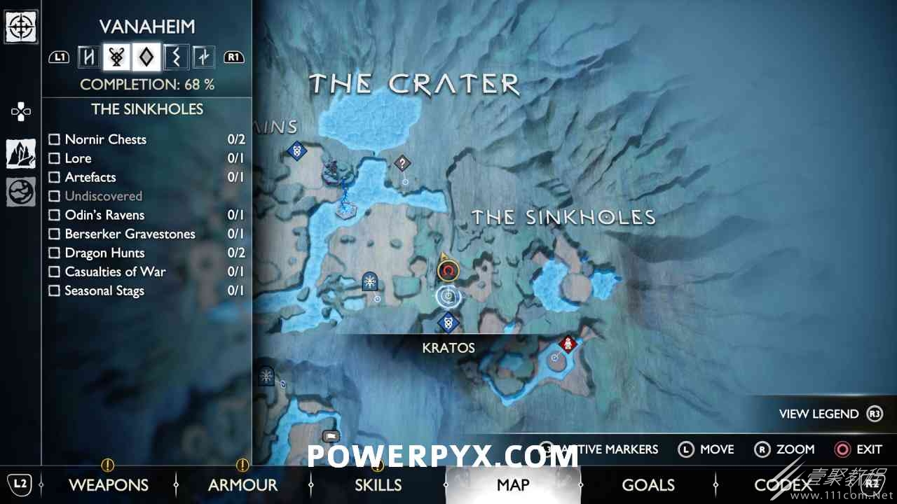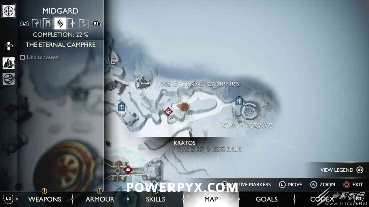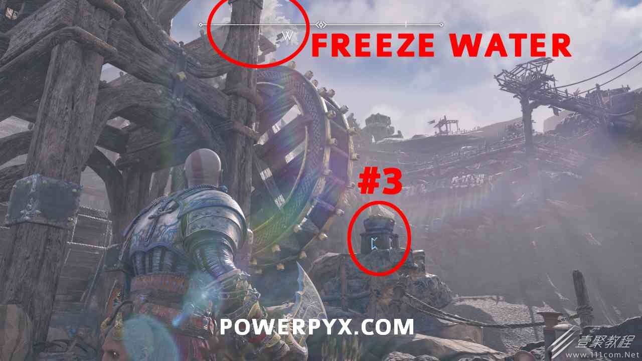 坑 靠近该区域的中心,靠近一个小水车。你必须烧掉 3 个上面有符文的火盆。您可以通过选择混沌之刃并按:l2:+:r2:来执行此操作。第一个在胸部的左边。第二个需要你向左下降,然后使用抓钩跳到第二个火盆。从第二个火盆通过抓钩向后跳,然后第三个火盆在移动的水车下方。您必须通过向上面通道投掷斧头来冻结水,然后才能点燃火盆。当所有 3 个同时点亮时返回宝箱,现在可以打开它。