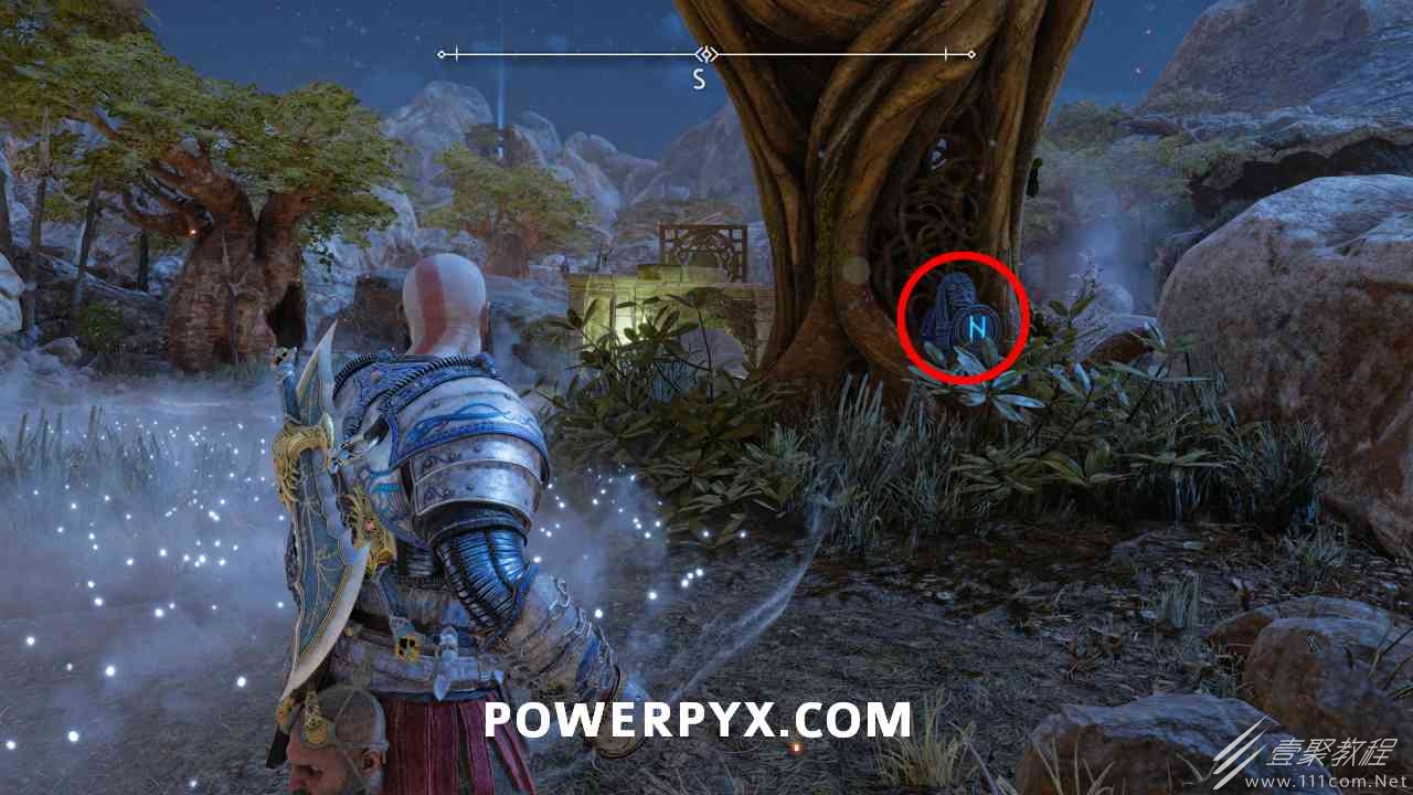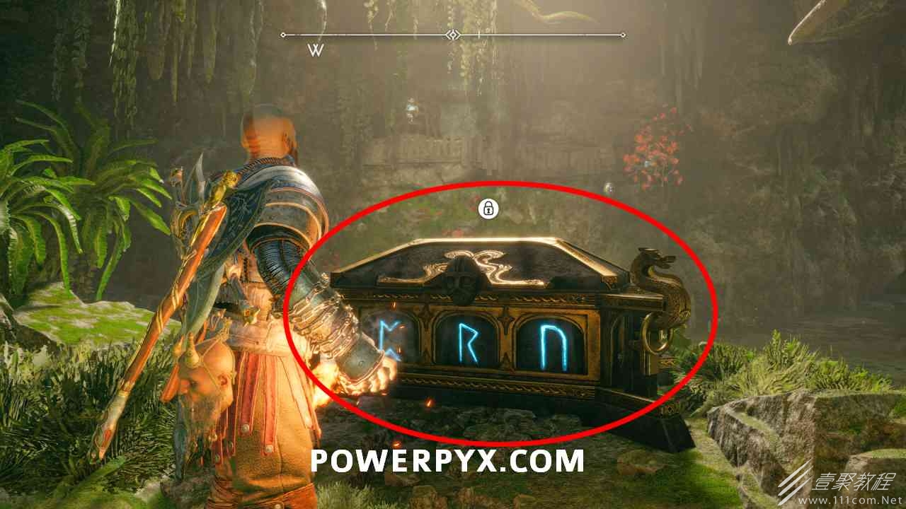 继续沿着传说后面的小路向上走,以获得诺尼尔宝箱。您必须通过投掷斧头旋转 3 个符号。第一个是在箱子前的楼梯左侧,用混沌之刃烧藤蔓。第二个是在左边的胸部后面。第三个是路径尽头的胸部左侧。