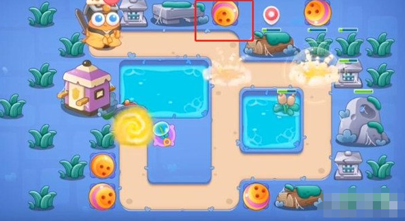1、第一波在左边增加两个保龄球,一个满级,一个不升级,接着在下面增加一个满级保龄球,右上角一个保龄球,中间泡泡塔。