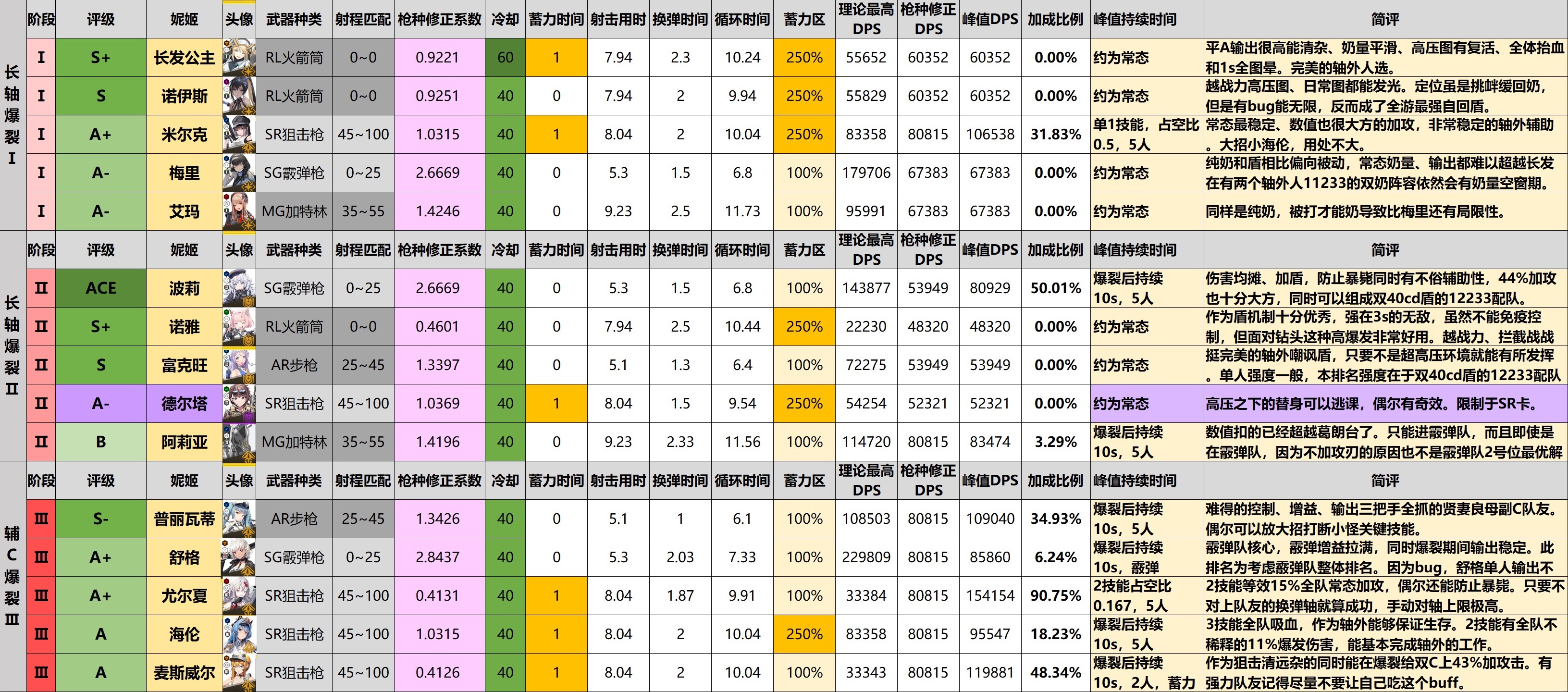 以下节奏榜以配队与循环为核心,分为辅助类型爆裂一、辅助类型爆裂二、输出C位、长轴角色、爆裂三辅C进行对比。