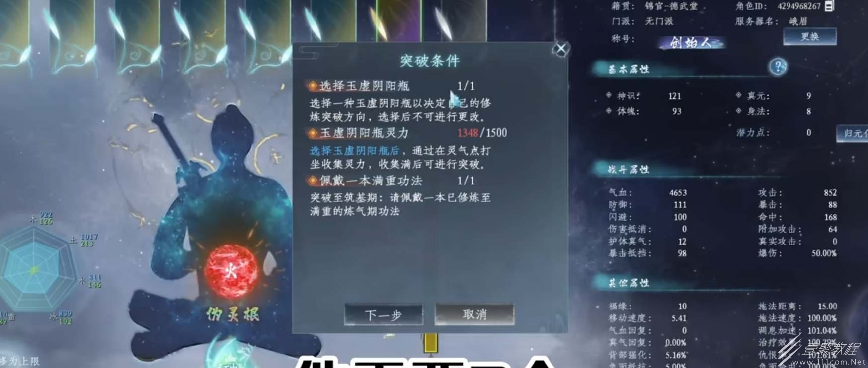 2、打开角色信息界面,点击突破可以查看条件,对玉虚阴阳瓶、灵力、功法都有一定的要求;