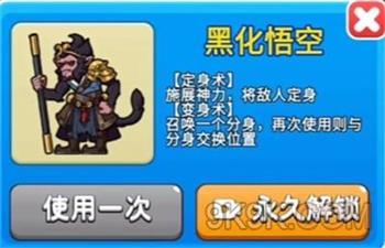 4.黑化悟空技能可以施展神力,将敌人定身,还可以召唤一个分身,再次使用就可以跟分身交换位置。