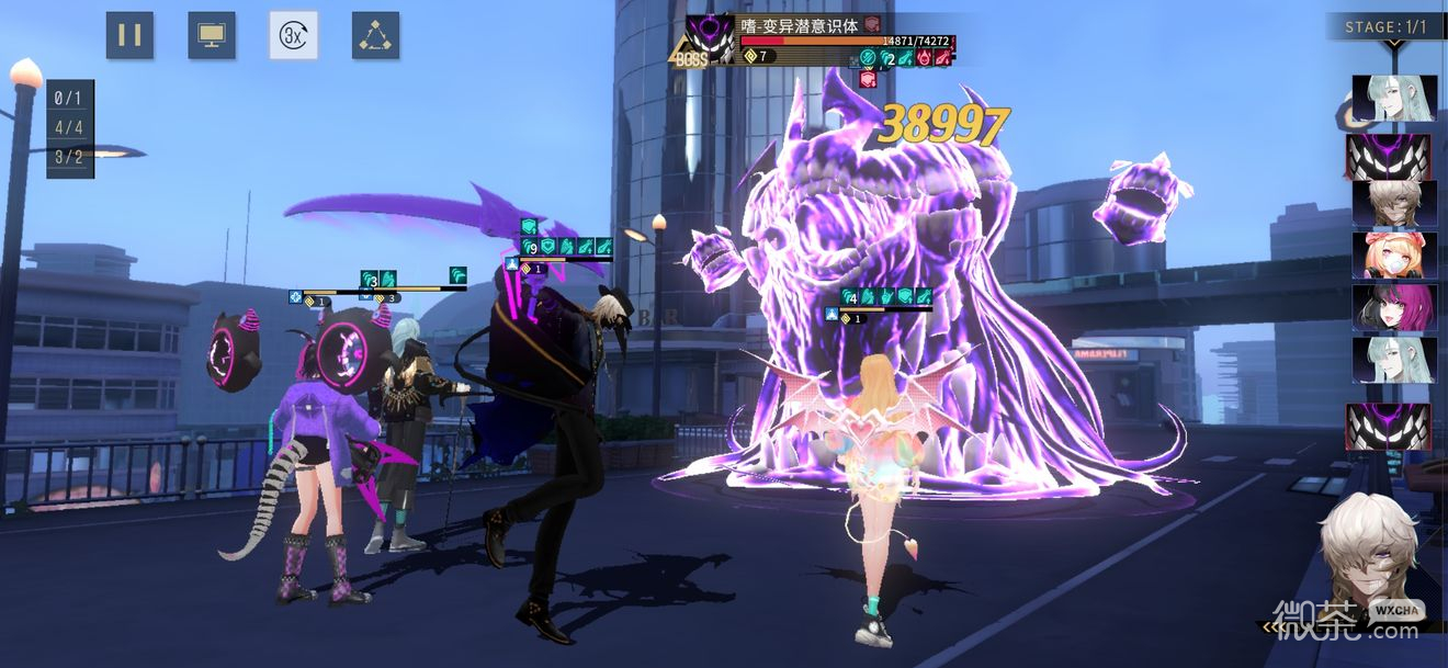 第二轮:天使奥义加同调-弦灵纹解放,奥义加攻-黑妹普攻带动丧钟一次普攻aoe-丧钟自动灵纹解放,此时正好四个豆开最后一次奥义收割!(基本上到这里一波怪就结束了。前几章直接这么打,效率很快,轻松过图。)
