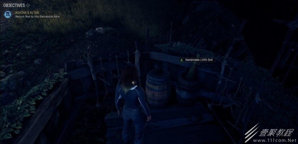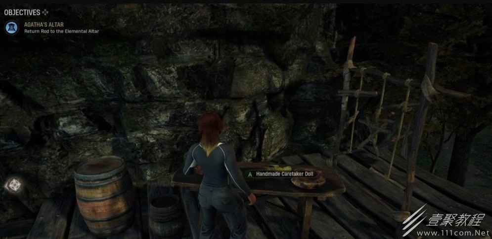 手作莉莉丝玩偶在静止之石附近,就在地图底部静止之石四个字的上方。就在一个木桶附近。