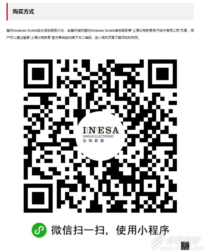 已经购买了国行版Switch的玩家可以点击保修网址链接前往腾讯官方网站,在网站中扫描下方二维码即可购买延长保修服务。