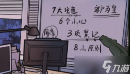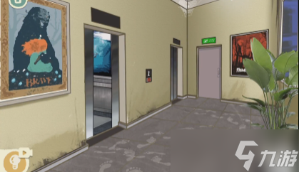 3、接着按下电梯18楼的按钮,中间到9楼会停下来,会有脚印走出去,我们就直接等就可以了,到了18楼之后走下电梯,打开办公室的灯,再点击电脑,电脑密码是后面的白板上面,输入密码7638,即可开机就通关了。