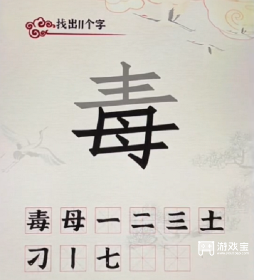 2、不知道这11个字是哪些的可以参考上面的答案在毒字上面写出来,有其他的字玩家也可以尝试一下。