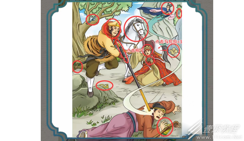 1、【三打白骨精】需要找出图中所有妖精,分别是:人参成精、精卫、猴精、精神小伙、风油精、洗洁精、鸡精、白骨精、马精、马屁精、补水精华、精箍棒